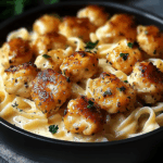 Garlic Butter Chicken Bites with Creamy Parmesan Pasta is a comforting dish that’s perfect for any occasion, from family dinners to cozy nights at home. This recipe features tender chicken pieces sautéed in a rich garlic butter sauce, paired with creamy pasta coated in savory Parmesan cheese. It comes together in just seven simple steps, making it an easy weeknight meal that will impress your guests and satisfy your cravings.