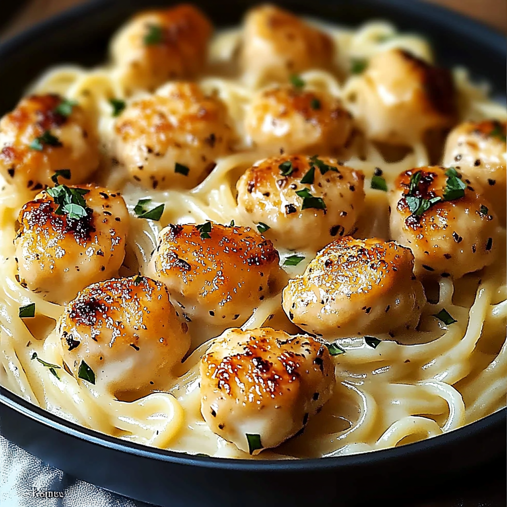 Garlic Butter Chicken Bites with Creamy Parmesan Pasta