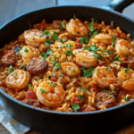 One Pot Shrimp and Sausage Jambalaya is a vibrant, flavorful dish that brings the essence of Cajun cooking right to your table. This easy-to-prepare meal combines tender shrimp with savory sausage, seasoned rice, and a medley of vegetables—all cooked together in one pot for minimal cleanup.